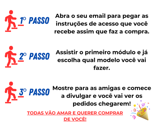 Após a compra, você receberá um e-mail com login para acessar todo o conteúdo na plataforma on-line da Hotmart, que está disponível 24 horas por dia. Você só precisa de um celular ou computador com acesso à internet. O passo a passo das peças é disponibilizado através de videoaulas!